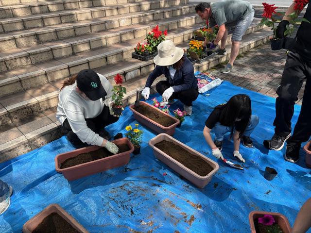 5月18日(日)には「花いっぱい運動」が各地区の花壇などで開催されました。赤湯公民館でも子供会育成会の皆さんとプランターに花を植えました。長岡交通島では長岡福寿会の皆さんが350本の花を植えて下さいました。