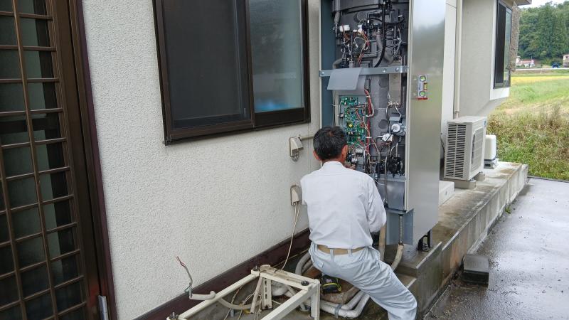 大江町内にてエコキュート交換工事です!