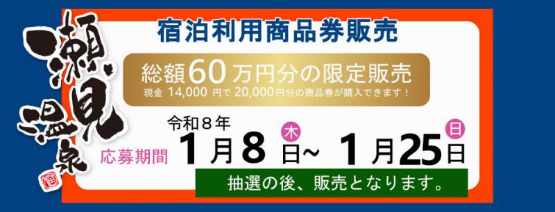 ●2026 お得な宿泊券を販売します。応募期間 令和8年1月8日(木)〜1月25日(日)