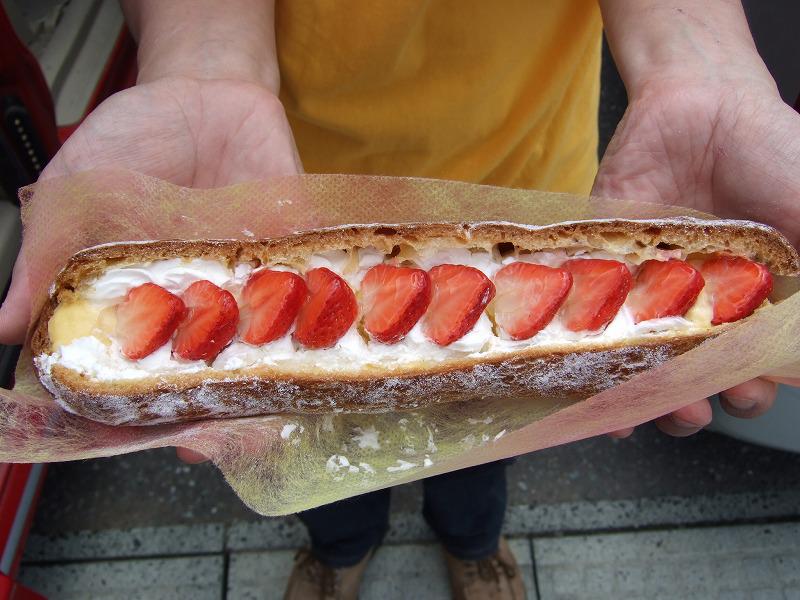 運転を代わってもらい、助手席で長い方のシュークリームを食べました。