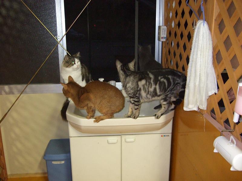 入口で手を消毒し、中に入ると猫臭い(笑)